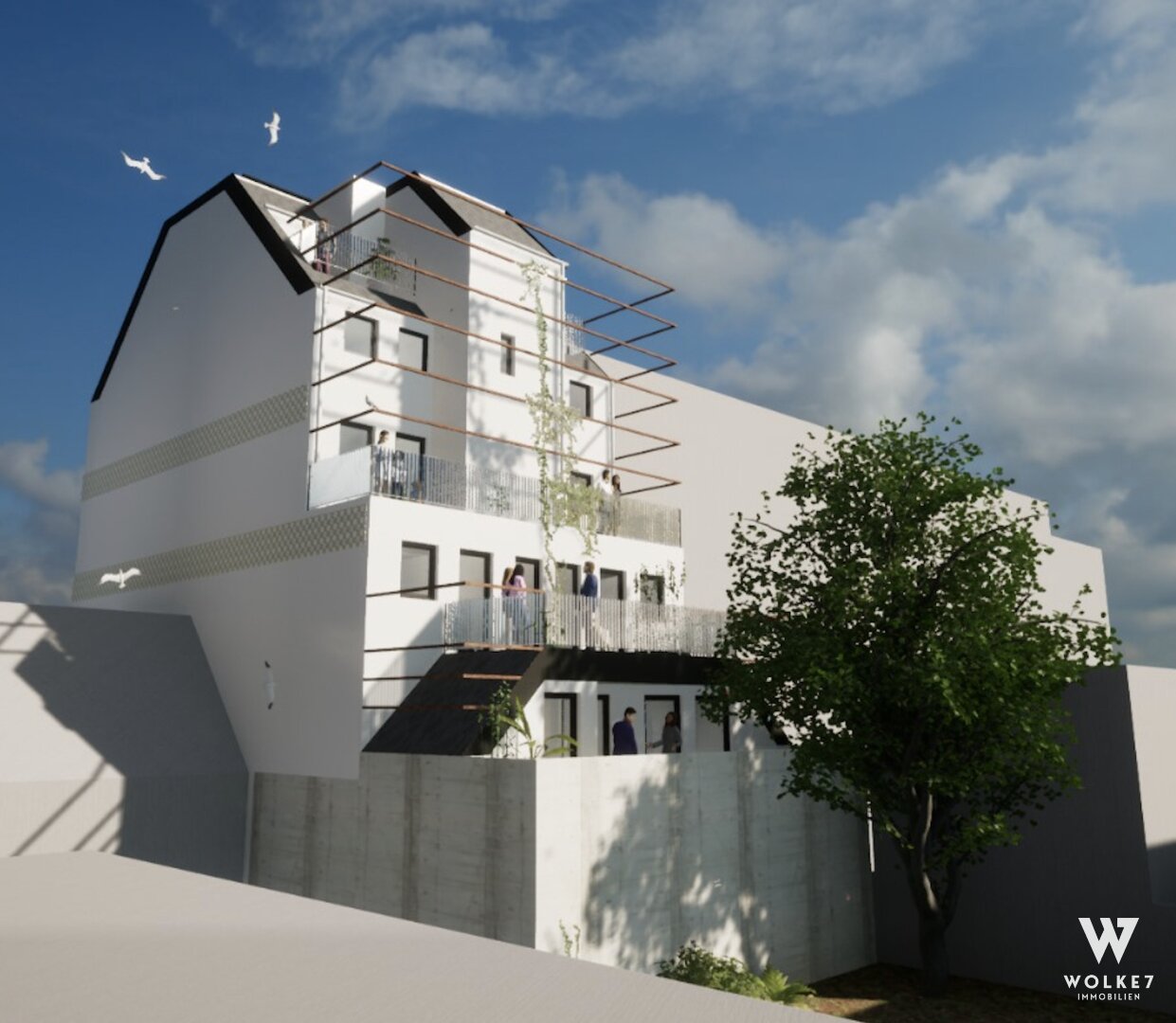 Das Projekt ist bereits baugenehmigt und beinhaltet eine schöne Gewerbefläche mit einem Ausmaß von ca. 110m² sowie 7 weiteren Wohnungen zwischen 44-84m² groß. Ausgestattet sind die Wohnungen teilweise mit schönen Außenflächen mit Blick in den Innenhof.