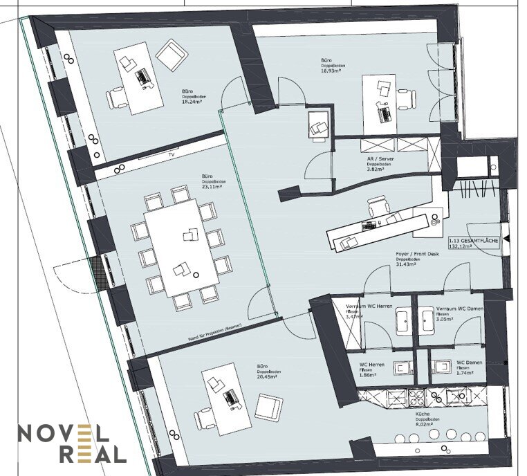Willkommen in unserem modernen zentralen Büro! Mit einer Gesamtfläche von 132,12m2 bietet dieses Büro alles, was Sie für ein effizientes Arbeiten benötigen.
