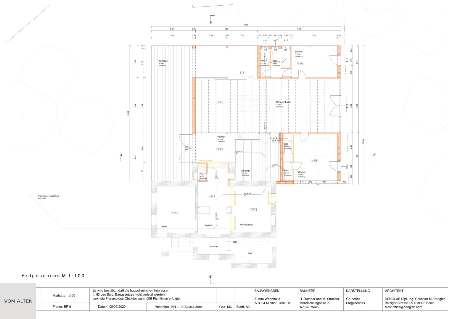 Ein architektonischer Blickfang ist der begrünte Lichthof im Zubau, der zusätzliches Tageslicht ins Innere bringt. Die großzügige, L-förmig angelegte Terrasse (davon ca. 17 m² überdacht) mit südwestlicher Ausrichtung schafft fließende Übergänge zwischen Innen- und Außenraum.