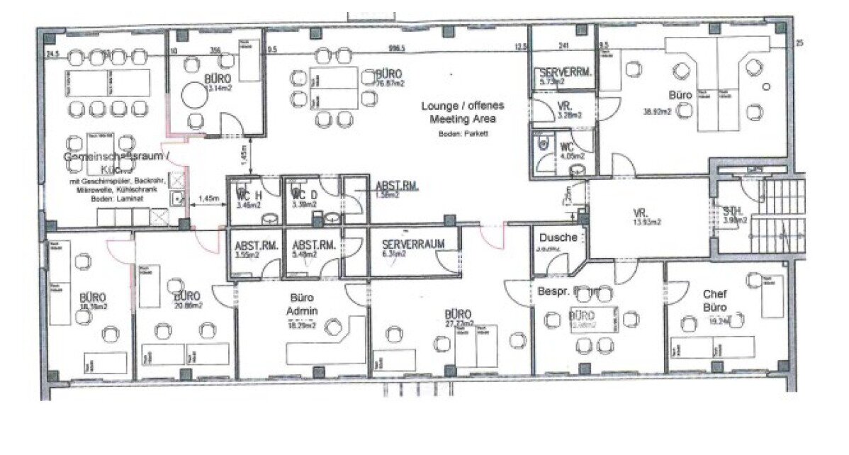 Empfang - 8 Büroräume- Besprechungsraum - Technikraum/Serverraum - Küche - 5 getrennte Sanitäranlagen - Dusche - 4 Kundenparkplätze inkl. E-Ladestation - Mitarbeiterparkplätze