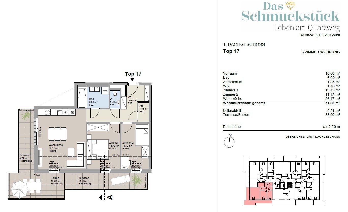 Mit dem Projekt „Das Schmuckstück – Leben am Quarzweg“ entsteht ein charmantes Wohnensemble mit insgesamt 27 hochwertig ausgestatteten Eigentumswohnungen, das urbanes Lebensgefühl mit ruhigem Wohnkomfort vereint. Die durchdachte Architektur, moderne Ausstattung und großzügige Freiflächen machen dieses Projekt zu einer echten Wohlfühloase – mitten in Wien, aber mit der Qualität eines Rückzugsortes.