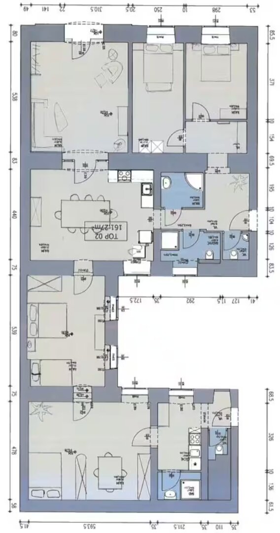 Die Wohnung verfügt über 2 WCs und 2 Bäder, die jeweils mit einer komfortablen Dusche ausgestattet sind und einen hohen Standard an Bequemlichkeit bieten. Diese durchdachte Raumaufteilung sorgt dafür, dass sowohl Sie als auch Ihre Gäste höchsten Komfort genießen können.