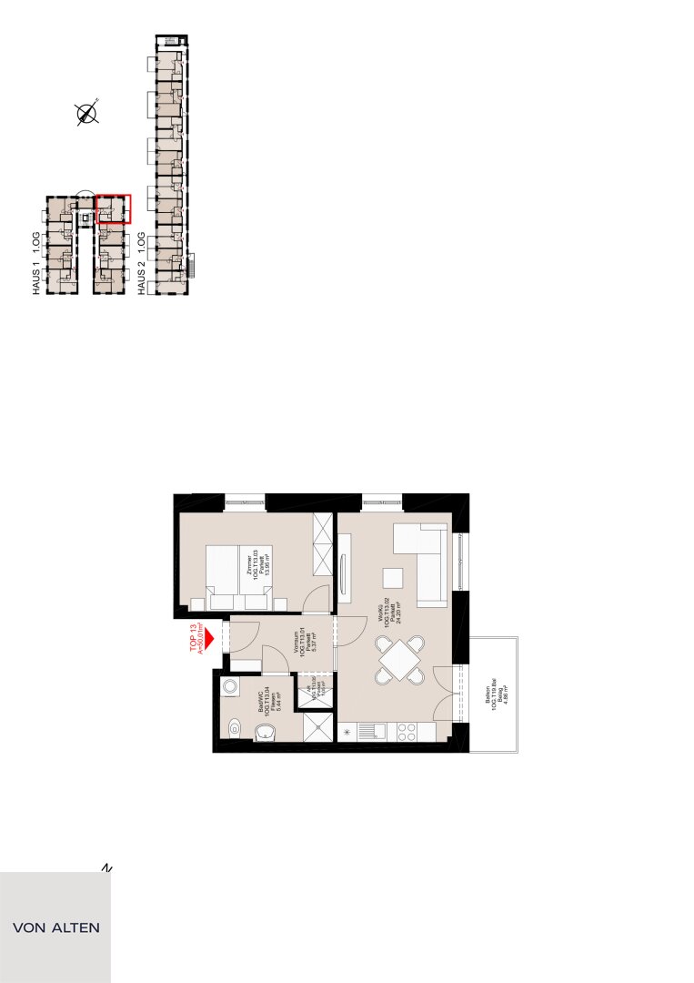 Die gegenständliche Wohnung stellt eine 2-Zimmer-Wohnung im 1. Obergeschoss mit einer Wohnfläche von ca. 50 m² dar: