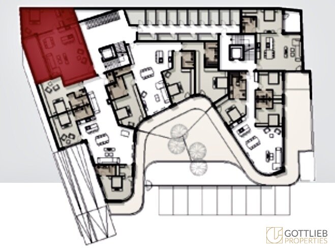 Das Apartment besticht durch einen gelungenen Grundriss, der perfekt den gesellschaftlichen Bereich vom Privaten trennt. Man betritt diese Liegenschaft und es eröffnet sich ein lichtdurchfluteter, großzügiger ca. 63 m² großer Wohn-Ess-Bereich mit offener Wohnküche. Im angrenzenden Raum befindet sich ein geräumiges ca. 27 m² großes Schlafzimmer mit en suite Duschbad.