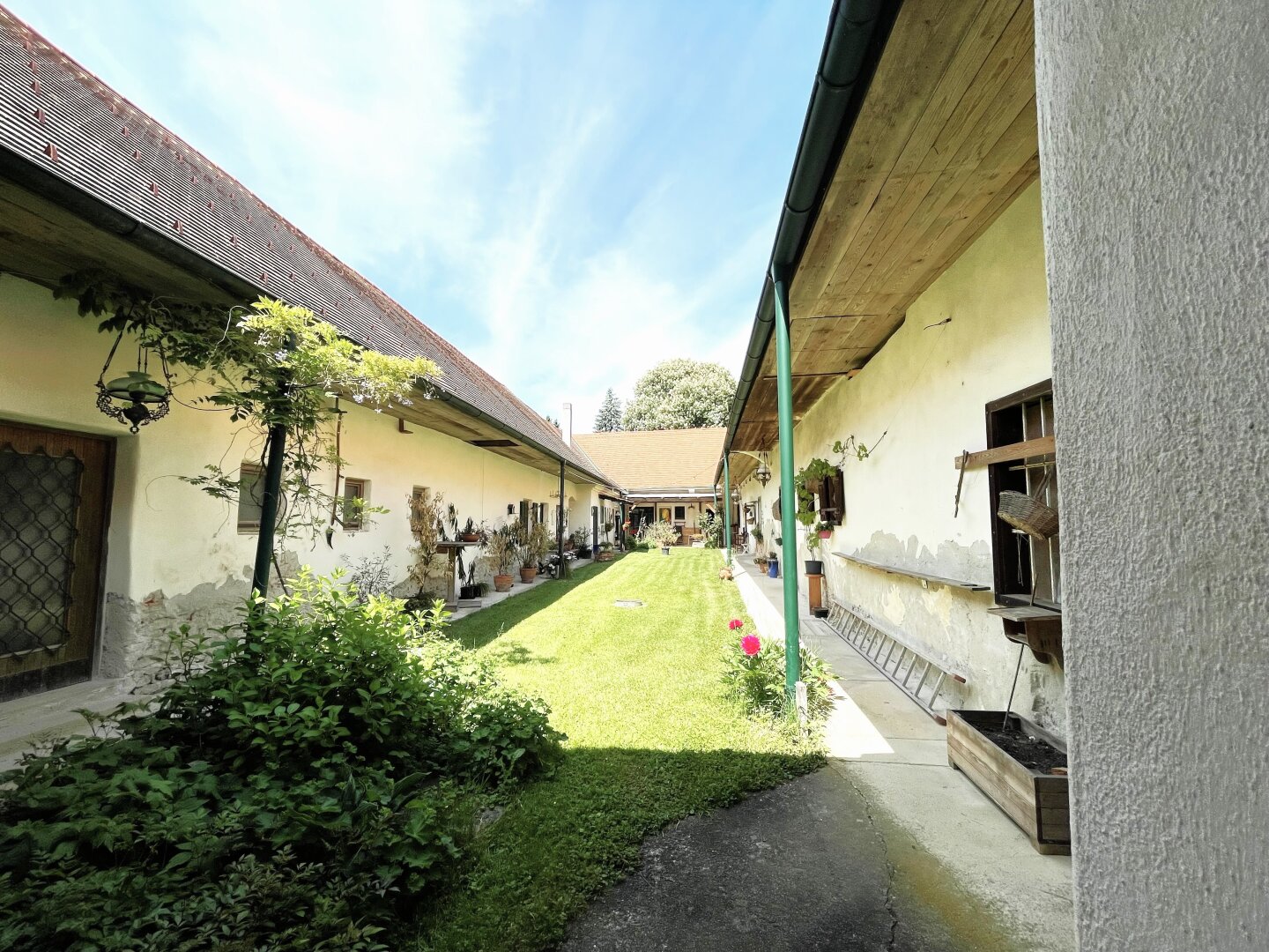 Um 1901 errichtet, werden Sie von der Architektur und Anlage dieses ehemaligen Meierhofs fasziniert sein: Stil, Charakter, Flair, der gut durchdachte Grundriss, die einzelnen Wohneinheiten, die verwendeten Materialien, die von Hand gemauerten Gewölbedecken, die antiken freiliegenden Sichttramholzdecken, die ehemaligen Stallungen und die Tenne, der Erd-/Weinkeller, der südwestseitig ausgerichtete Arkadengang mit dem traumhaften Fernblick, …!