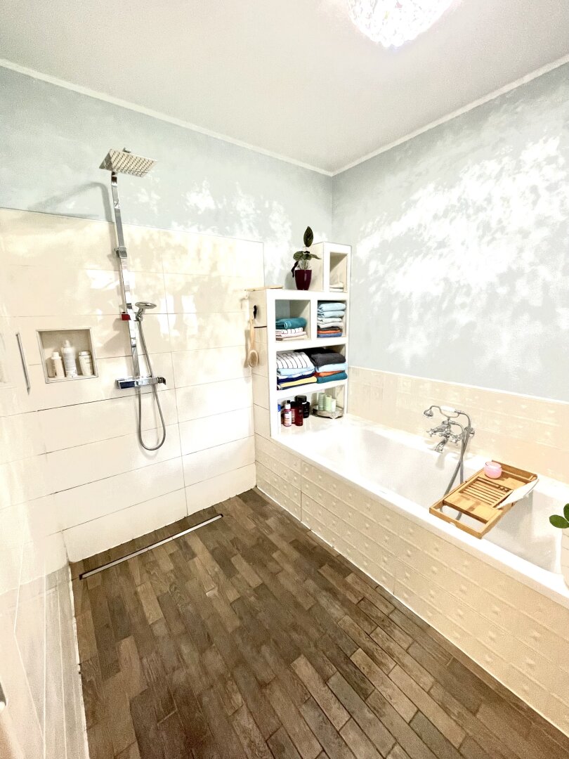 *Ehemalige zweite Wohneinheit bestehend aus Vorzimmer mit Küchenanschlüssen, Badezimmer, ersten Zimmer mit freiliegender Holztramdecke und Durchgang zum zweiten Zimmer mit Gewölbedecke sowie Zugang zum zweiten Badezimmer;