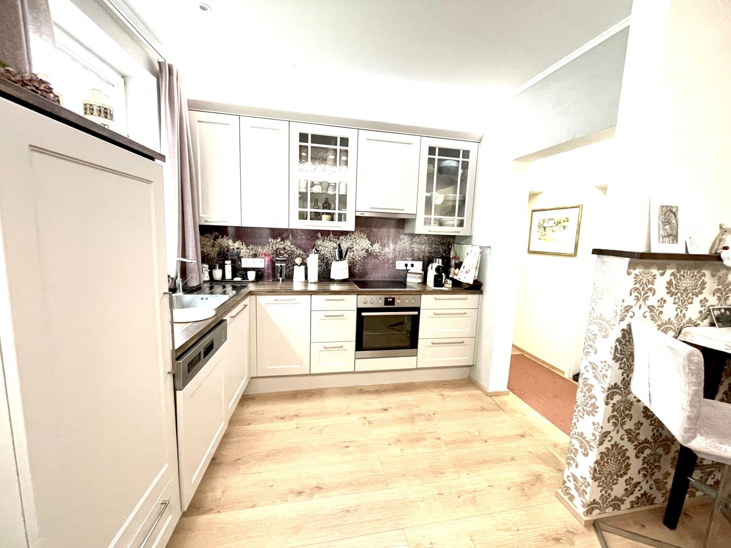 Durch den Vorgarten mit dem Küchengarten gelangt man von der überdachten Holzveranda in das Vorzimmer. Linker Hand liegt die Wohnküche mit der Frühstücksbar, dem Herd mit dem Ceranfeld, dem Backrohr, dem Geschirrspüler, der Spüle und dem Kühlschrank. Von der Küche aus gelangt man ins kleine Vorzimmer mit Zugang zum Hauswirtschaftsraum, dem großen sanierungsbedürftigen Gewölberaum, der derzeit als Lagerraum genützt wird und zum überdachten Sitzplatz im Innenhof führt. Zurück im Vorzimmer kann man das erste Badezimmer begehen, welches mit einem Fließenboden sowie einer Widerstand Fußbodenheizung ausgestattet ist und aus zwei Teilbereichen besteht: Der erste verfügt über das Waschbecken und das WC, der zweite Teil beinhaltet die Dusche und die Badewanne und hat direkten Zugang zum Innenhof. Rechts vom Vorzimmer aus liegt das erste Zimmer, das große Wohn-/Esszimmer mit den Zugängen zu weiteren drei Zimmern. Geradeaus gelangt man in das zweite Zimmer, das derzeit als Büro genützt wird. Links daneben befindet sich das dritte Zimmer, welches derzeit als erstes Schlafzimmer genützt wird. Auf der linken Seite des Wohn-/Esszimmers liegt das vierte Zimmer, welches als Wohnzimmer genützt wird. Von diesem aus kann man den Schrankraum, das fünfte Zimmer, welches als zweites Schlafzimmer genützt wird, sowie das kleine Vorzimmer mit Zugang zum kleinen Badezimmer, mit Waschbecken, Dusche, WC und Waschmaschine und dem Innenhof begehen.