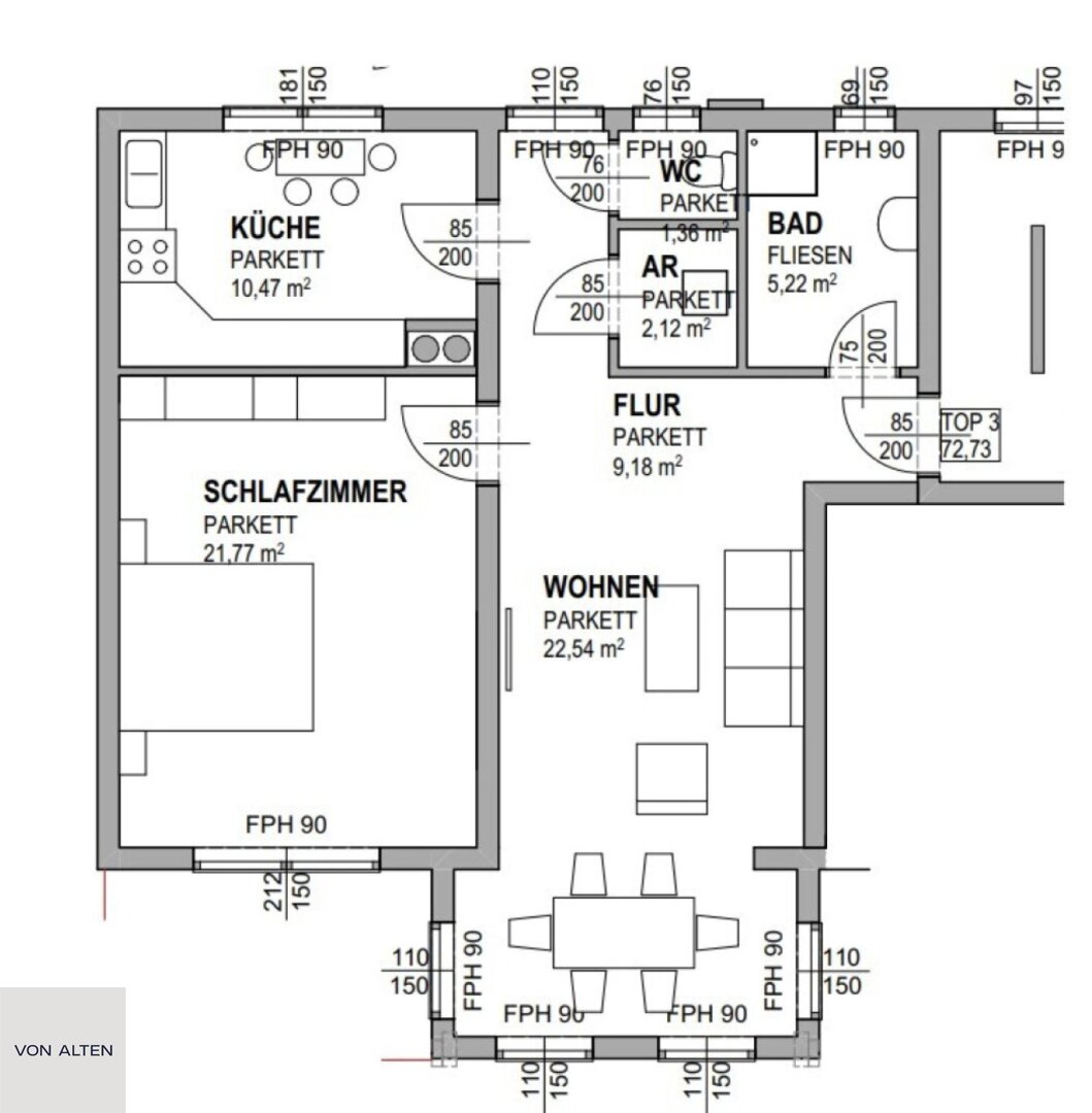Zum Verkauf steht eine 2-Zimmer-Wohnung im 1. Obergeschoss mit einer Wohnfläche von ca. 73 m²: