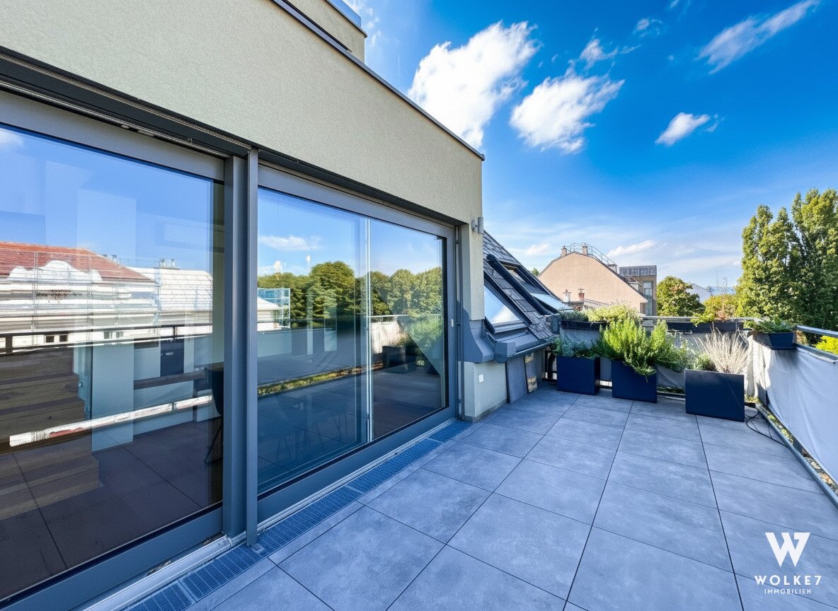 EXKLUSIVE, KLIMATISIERTE 3-ZIMMER-DACHGESCHOSS-MAISONETTE MIT XXL-TERRASSE UND TIEFGARAGE IN WIEN-STREBERSDORF