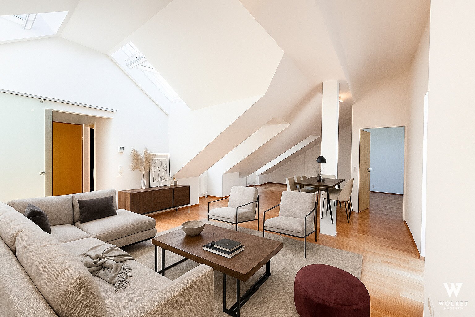Diese Dachgeschosswohnung vereint urbanes Lebensgefühl mit Rückzug ins Grüne – eine seltene Kombination aus Lage, Charme und Lebensqualität.