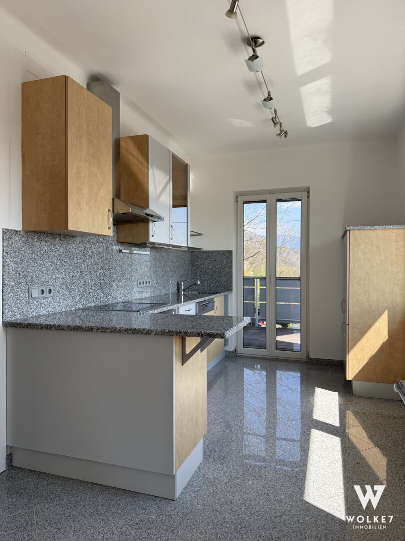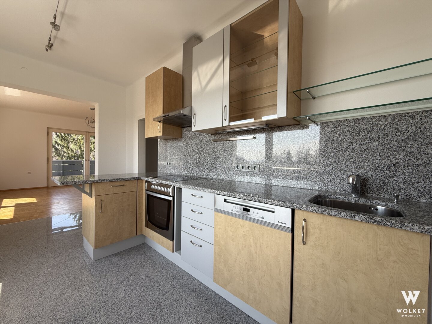 * großer Wohnraum mit offener Küche inkl. Geräten und Zugang zum Balkon