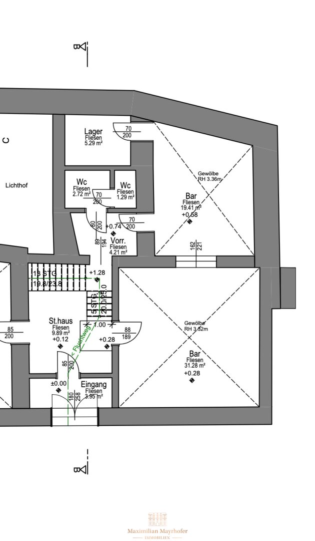 Ergänzend stehen mehrere Nebenräume, drei WCs, ein Schminkraum, Abstellflächen und eine Waschküche zur Verfügung. Sämtliche Installationen, Beleuchtungen und Belüftungen wurden im Zuge der Sanierung erneuert, wodurch ein sofortiger Betrieb ohne zusätzliche Investitionen möglich ist.
