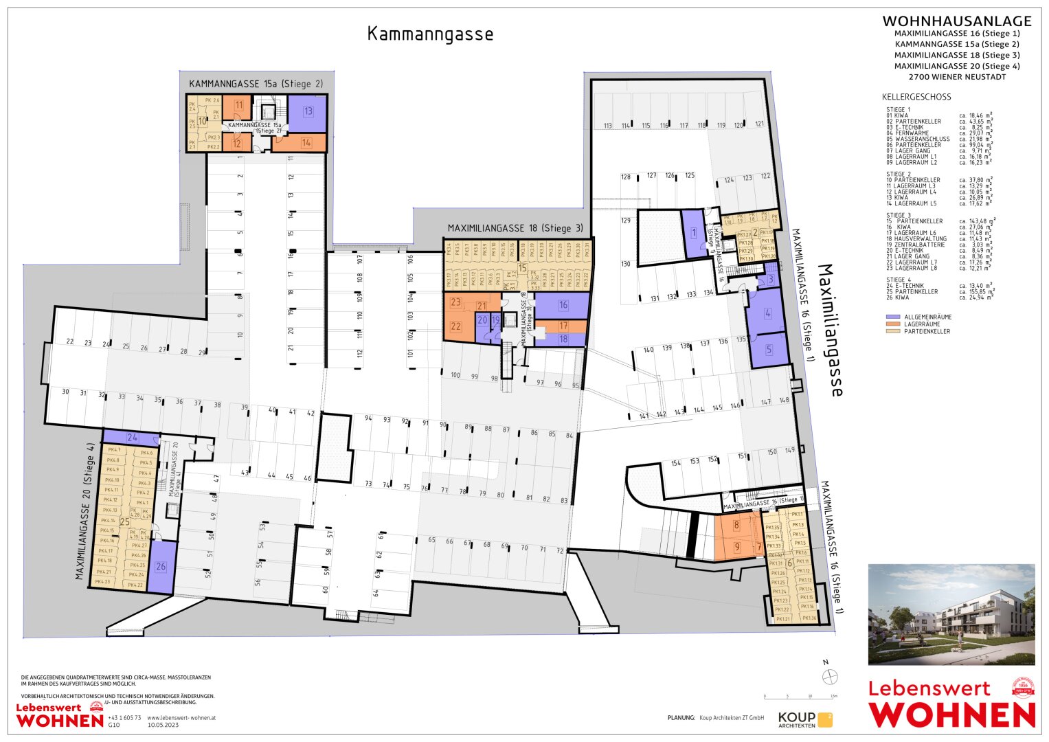 Im Herzen von Wiener Neustadt, an der Ecke Maximiliangasse/ Kammanngasse, unmittelbar an unserer bestehenden Reihenhausanlage zeigt das moderne _Wohnprojekt Celia_, wie die Verwirklichung persönlicher Träume gelingen kann. Ob kompaktes 2-Zimmer-Apartment mit Terrasse oder großzügige Familienwohnung mit Garten – 105 Wohnungen überzeugen auf den ersten Blick und halten für jede Lebenslage das passende Konzept bereit.