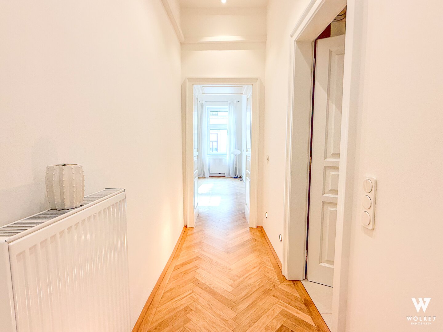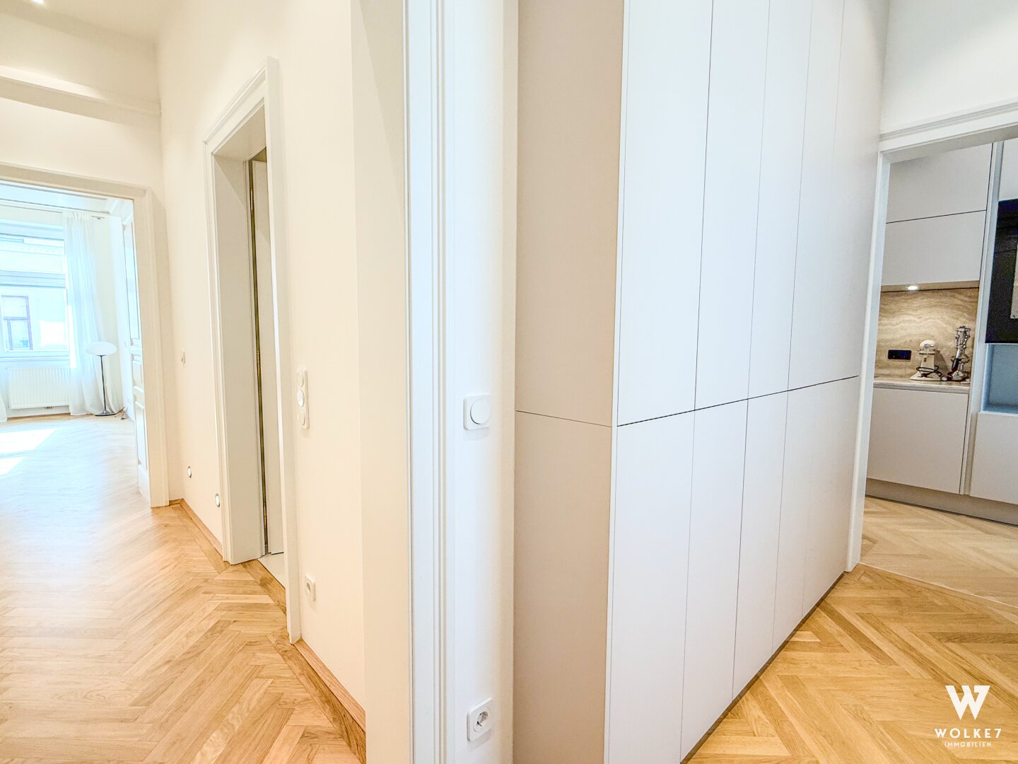 Diese Wohnung ist ein wahres Juwel für alle, die den unverwechselbaren Flair eines klassischen Altbaus lieben – hohe Räume, edles Fischgrätparkett, stilvolle Details – und dabei nicht auf die Annehmlichkeiten einer modernen Sanierung verzichten möchten. Hier vereint sich Eleganz mit zeitgemäßen Standards wie Klimaanlage, Lift und maßgefertigten Einbauschränken.