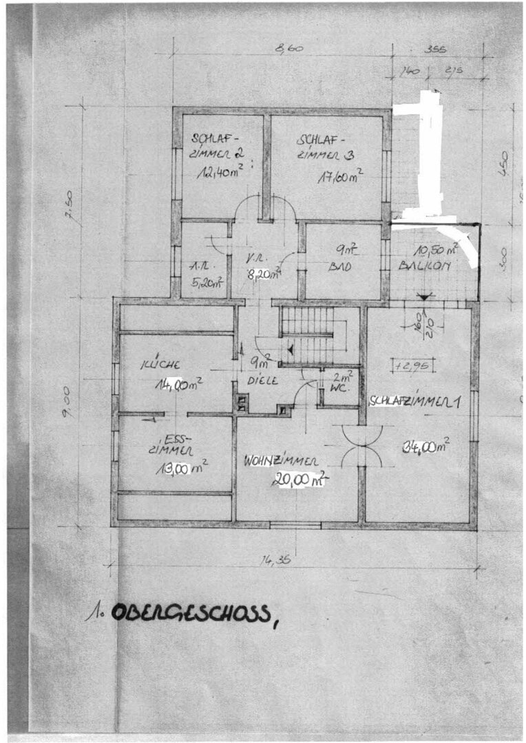 * OG: ca. 144 m2, Küche mit kleinem Esszimmer, Wohnzimmer, 3 Schlafzimmer, Bad mit Badewanne/Dusche u. WC, extra WC, Balkon mit herrlichem Gartenblick