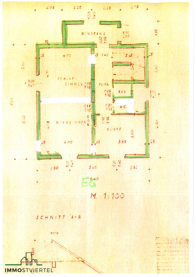 * Erdgeschoß: ca. 58 m² ( Windfang, Vorraum, WC, Bad mit Wanne, großes Wohnzimmer, Küche )