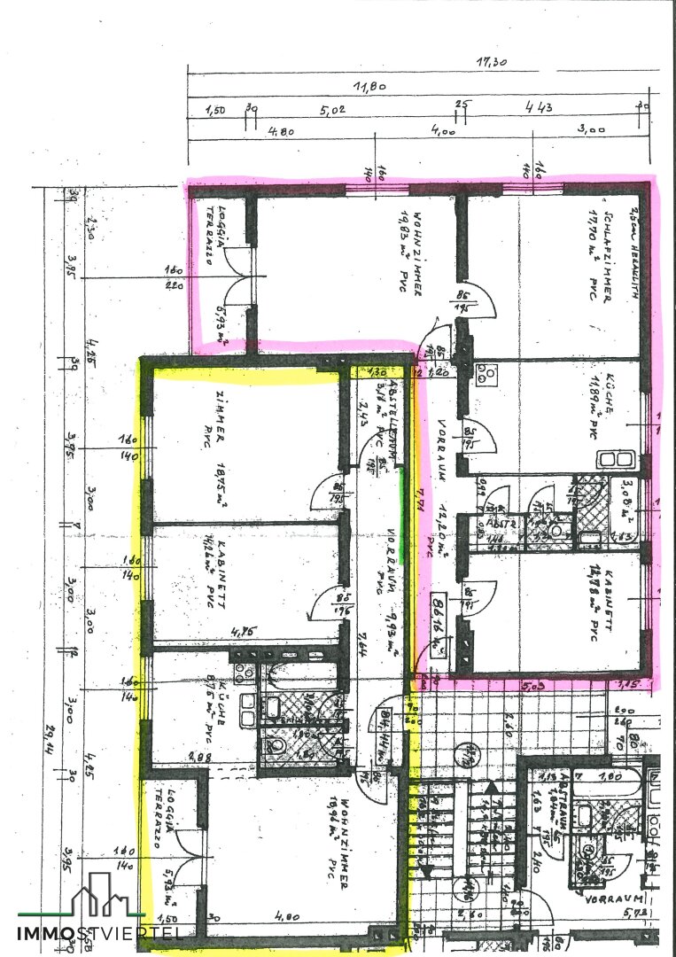 * 2 Wohnungen derzeit zusammengelegt wieder komplett teilbar ( Es handelt sich hier um Wohnung Top 7 mit ca. 86,16 m² und um Top 8 mit 84,44 m² Nfl.)