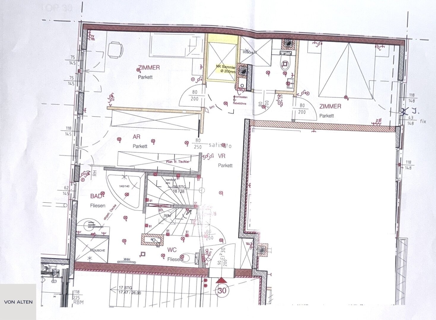 + 2 Badezimmer mit Dusche, Wanne, WC und Fenster; zzgl. 1 separates WC