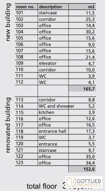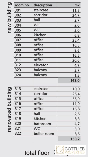 + ca. 309 m² in den zwei obersten Stockwerken des Neubaus