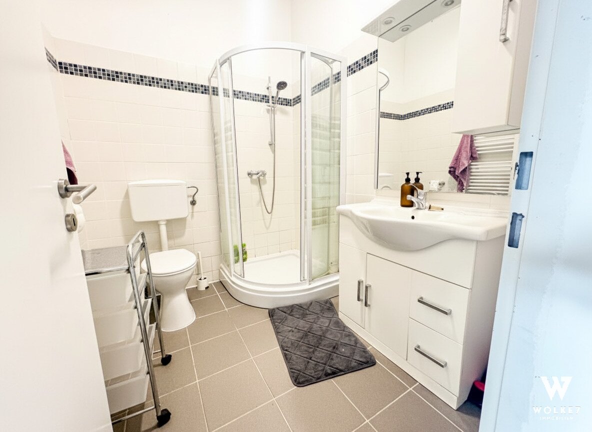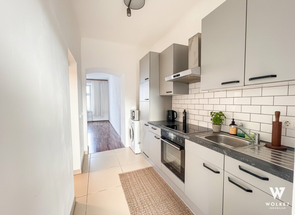 Ein praktischer Abstellraum direkt neben der Wohnung steht zusätzlich zur Nutzung zur Verfügung. Küche und Badezimmer sind möbliert und sofort benutzbar.