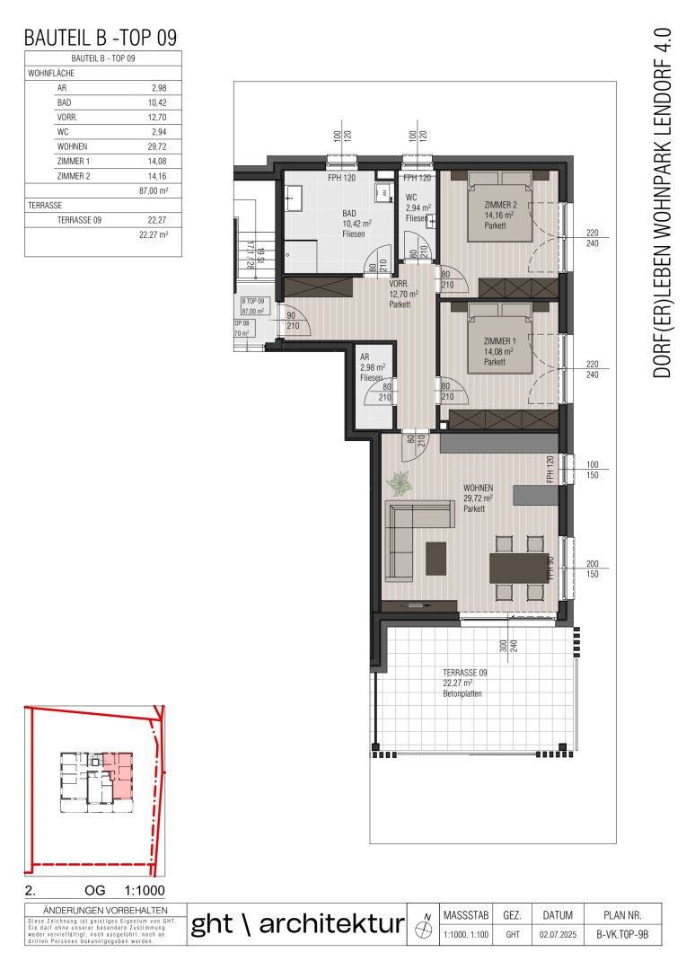 Top B9: WFL 87,00 m² | Terrasse: 21,67 m² | KP € 460.000,-