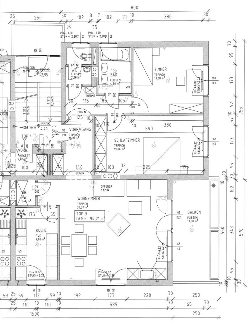 Die Wohnung liegt im 1. Stock, ohne Lift und hat eine Wohnfläche von ca. 94m². Über einen großzügigen Vorraum mit Garderobe sind alle 3 Räume getrennt zu begehen.
