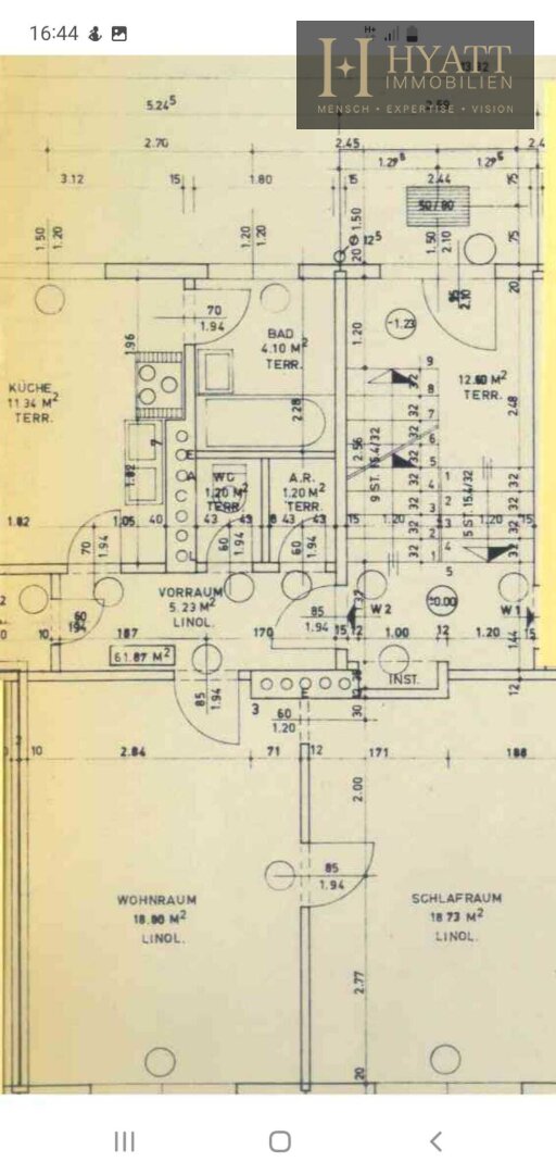 Zum Verkauf gelangt eine gut aufgeteilte 2-Zimmer-Wohnung mit einer Wohnfläche von ca. 61,9 m² (laut Plan). Die Wohnung überzeugt durch ihren funktionalen Grundriss und getrennte Räume.