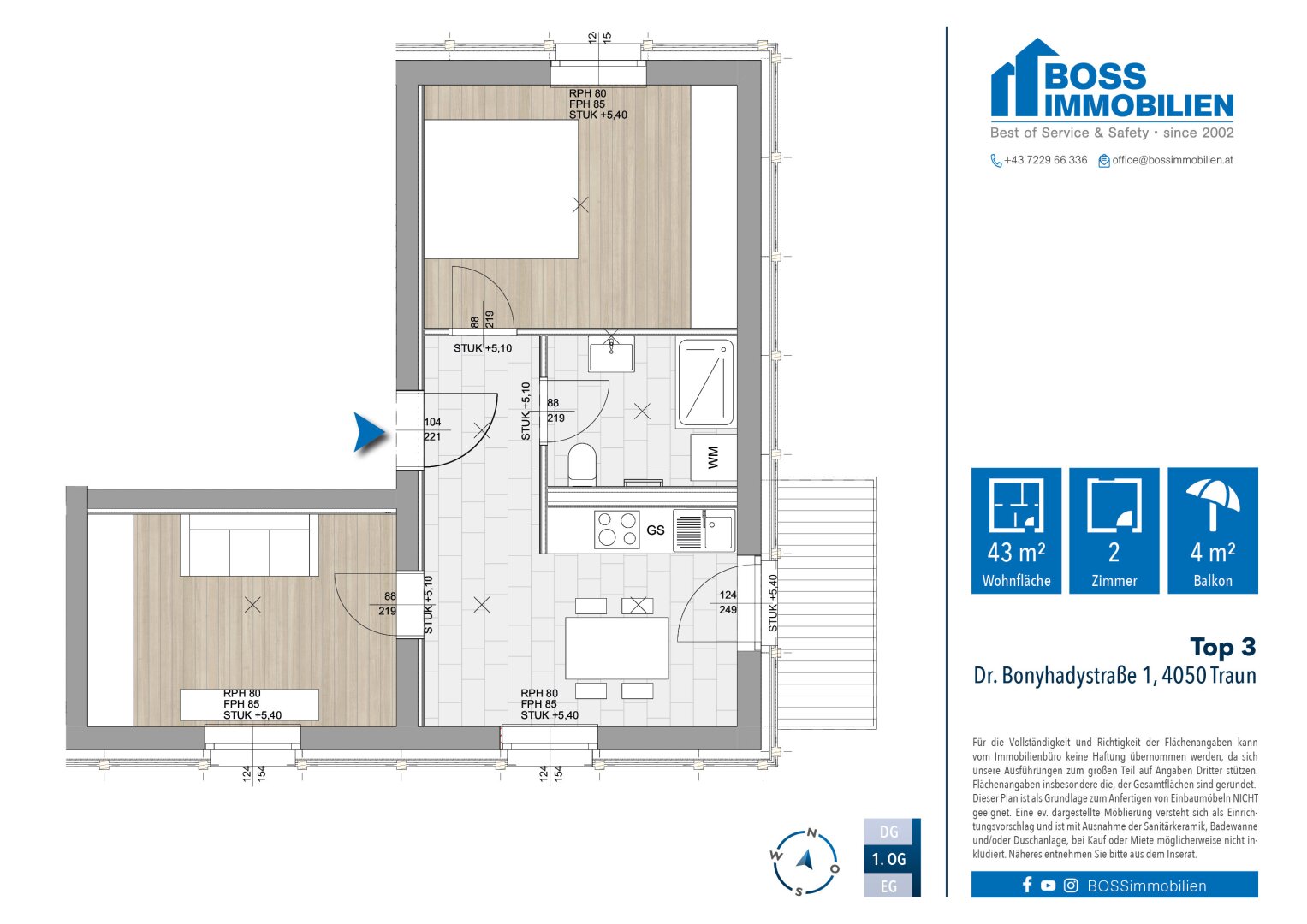 Ein Kellerabteil bietet zusätzlichen Stauraum, optional steht ein Freiparkplatz zur Verfügung. Eine kompakte, moderne Wohnung mit Wohlfühlcharakter – ideal für alle, die komfortables Wohnen in überschaubarer Größe suchen.