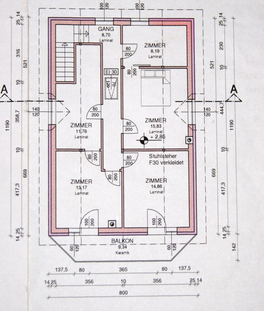 - ein 14,86 m2 großes Schlafzimmer mit Zugang zum Balkon