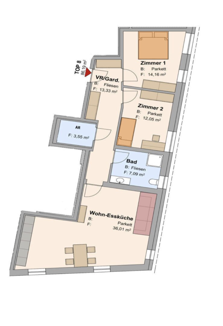 Das Highlight der Wohnung ist das geräumige Wohnzimmer, welches mit hochwertigem Parkettboden und Fußbodenheizung ausgestattet ist. Hier können Sie gemütliche Abende mit Ihren Liebsten verbringen. Die offene Küche ist bereits mit einer modernen Einbauküche ausgestattet, die keine Wünsche offen lässt. Hier macht das Kochen gleich doppelt so viel Spaß!