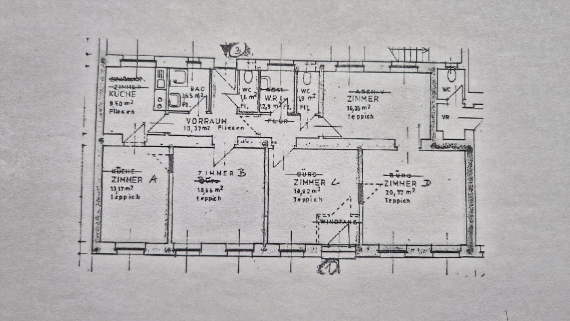 Hier kommt ein im Erdgeschoß gelegenes Wohnungseigentum, Wohnung und Büro, zum Verkauf. Ein laut Energieausweis ursprünglich aus etwa 1864 stammendes Altbauhaus wurde nachträglich adaptiert und ausgebaut und schließlich 1993 Wohnungseigentum begründet. Das Objekt ist im vorliegenden Nutzwertgutachten mit 57m² Nutzfläche Wohnen und 61,99m² Nutzfläche Büro, also ingesamt 118,99m² Nutzfläche ausgewiesen. Es verfügt über fünf, großteils zentral begehbare Zimmer, eine Küche, ein Duschbad, einen Abstellraum und zwei Toiletten. Für die letzte Nutzung als Büro wurden zu diesem Zweck die Räume entsprechend mit strapazierfähigen Böden, abgehängten Decken mit hellen Lichtpanelen und umfangreicher Elektroinstallation inklusive Netzwerkverkabelung adaptiert. Beheizung und Warmwasserbereitung erfolgen über eine Gaskombitherme. Das Objekt ist mittels eigenem Eingang direkt von der Straße, aber auch hofseitig zu betreten, was auch zu einer vielseitigen Verwendbarkeit beiträgt. Die Hauptausrichtung nach Süden mit dem gegenüberliegenden kleinen Park vor der Türe, die Nähe nicht nur zu vielen kleinen und großen Betrieben, sondern auch zum Naherholungsgebiet Liesingbach sind auch noch positiv zu erwähnen.