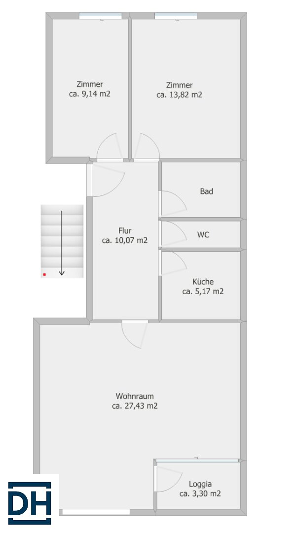 * Wohnfläche 71,50 m² / Loggia 3.30 m² /Keller 6.70 m²