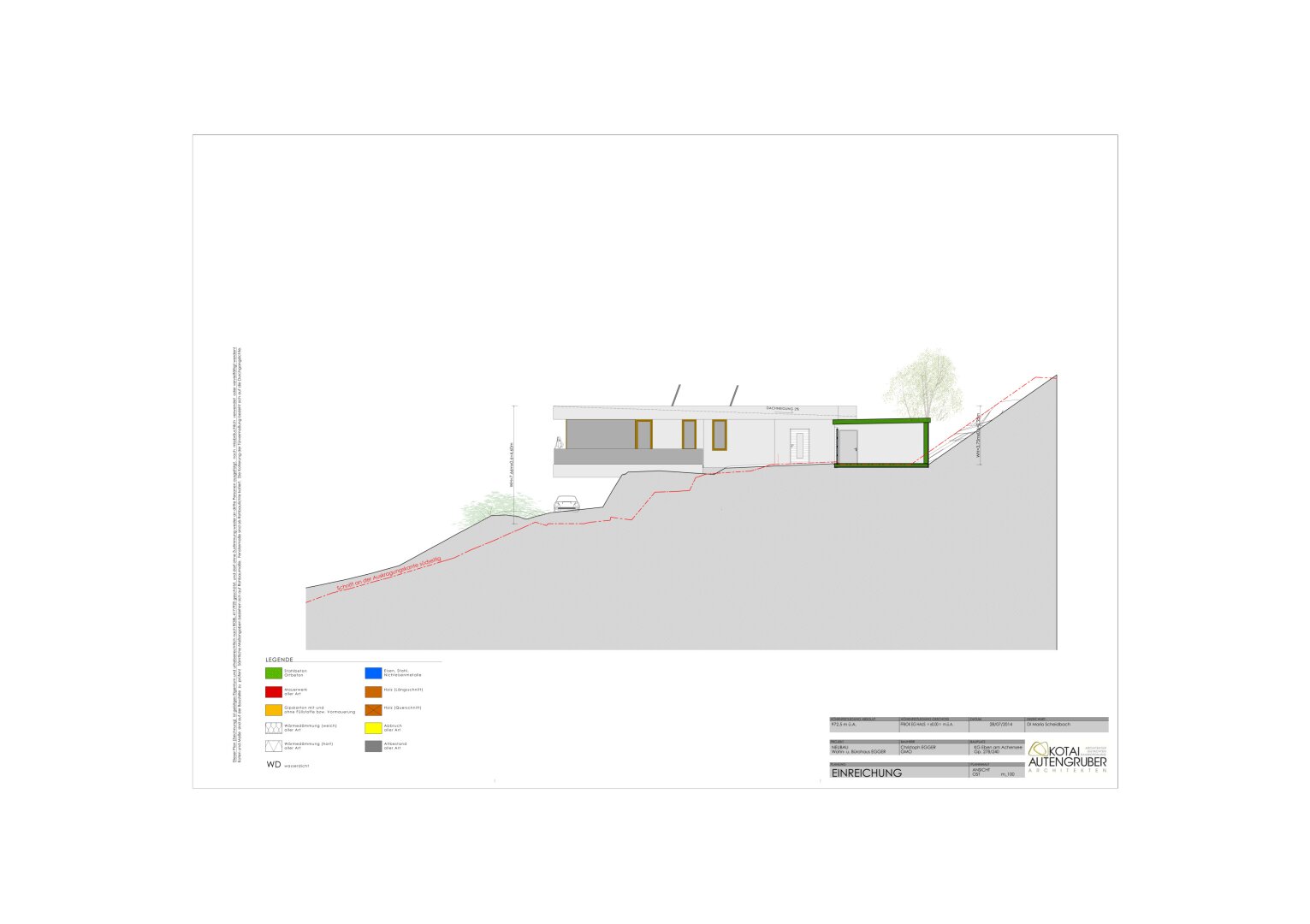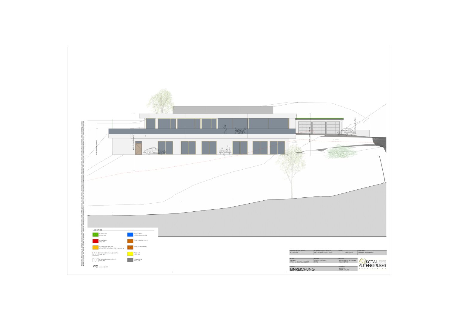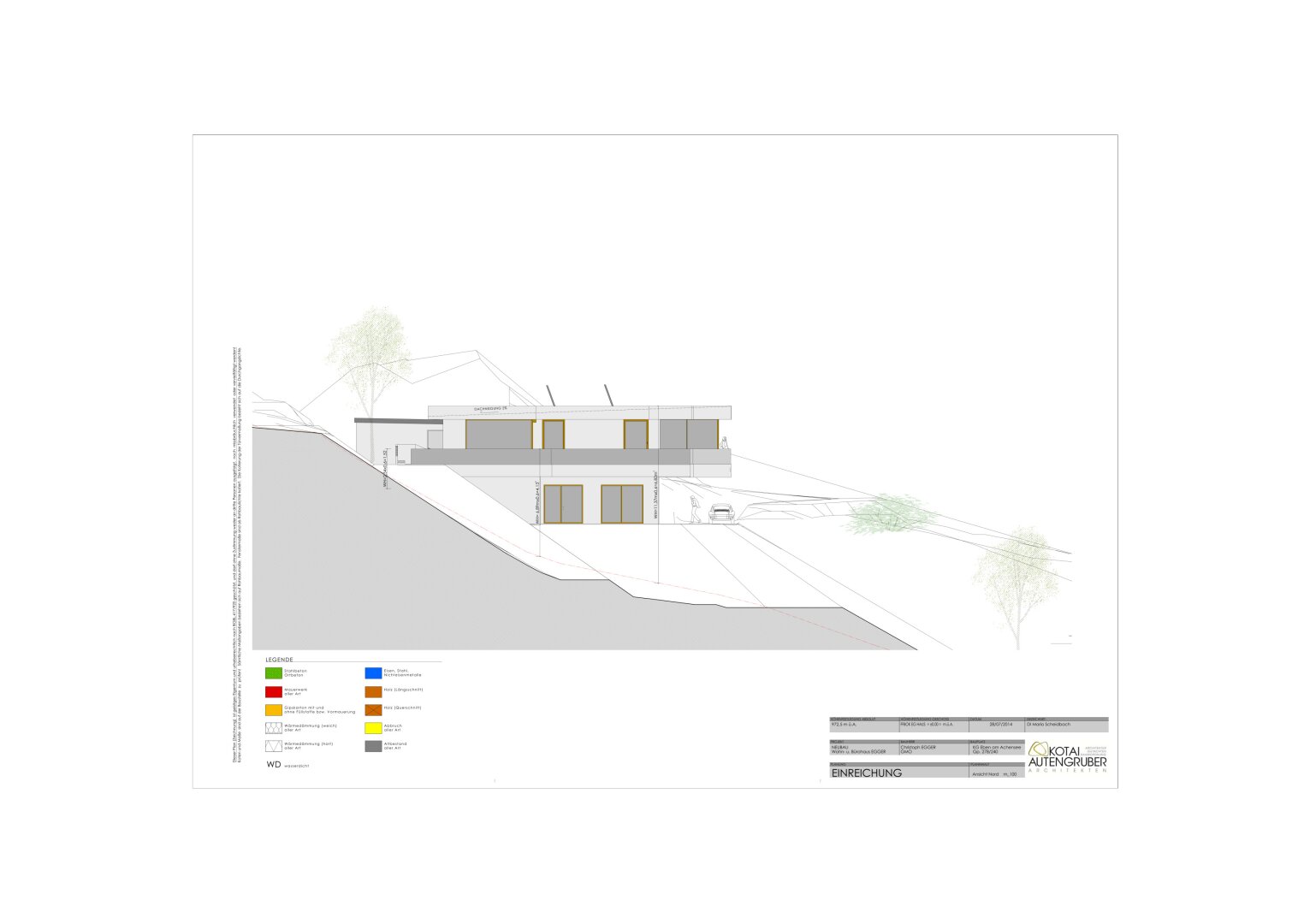 Im Obergeschoss befindet sich die luxuriöse Penthousewohnung, welche durch die Hanglage direkt begeh- und befahrbar ist, samt Aussenparkplätzen sowie einer 65m² großen Garage für 3 PKW und großer Zusatznutzfläche.