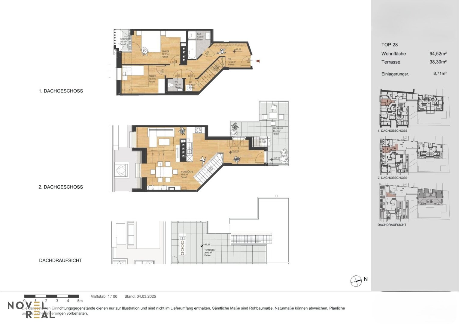 Erstbezug-Maisonette mit dreifachem Dachterrassentraum