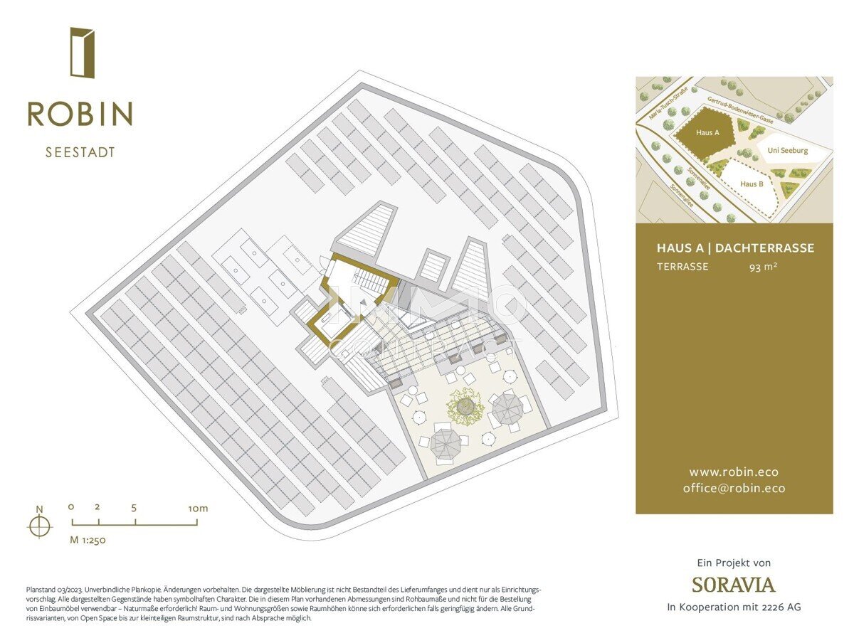 Die drei ROBIN Gebäude sind durch einen begrünten Innenhof verbunden. Freiflächen und großzügige Dachterrassen laden zu Begegnungen und Energietanken an der frischen Luft ein.
