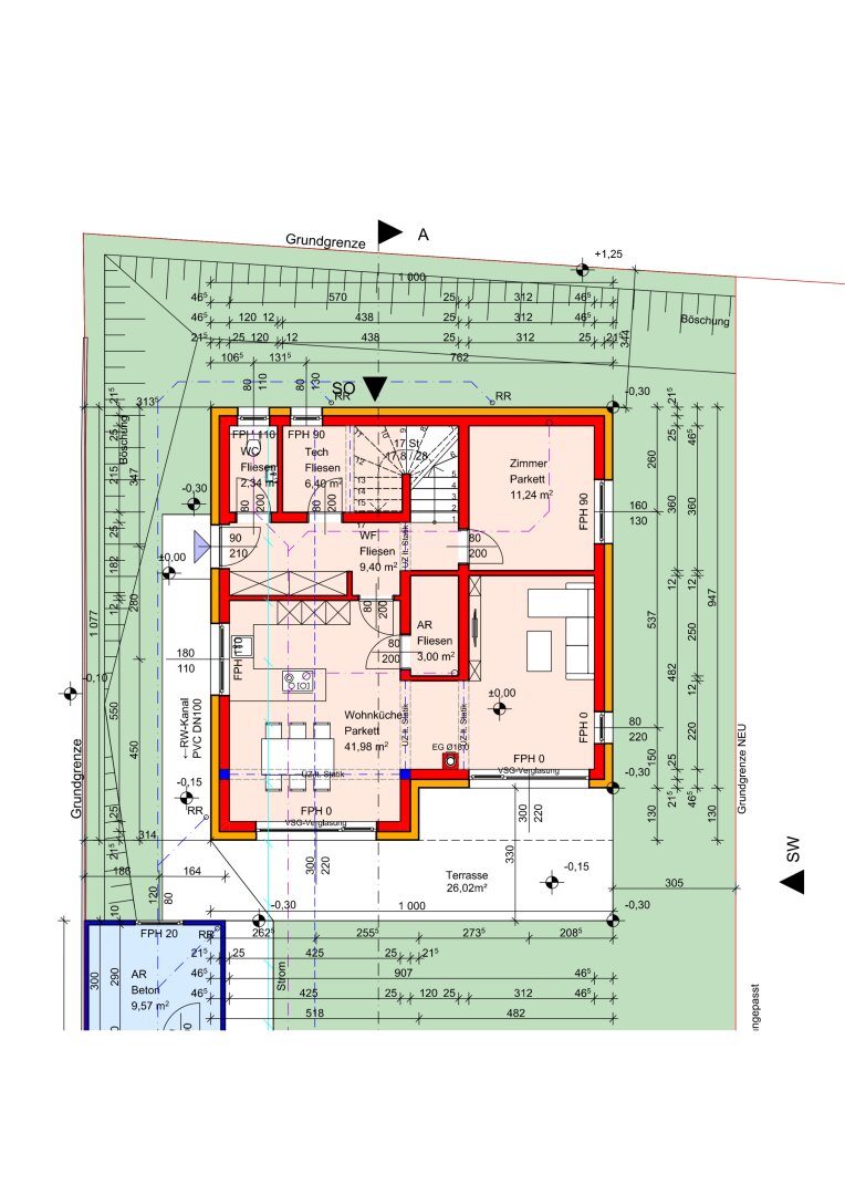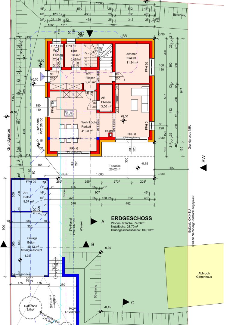 Wir bauen mit gewohnt hohem Standard. Das EFH wird in bewährter Massivbauweise in Niedrigenergiestandard und mit qualitativ und technisch hochwertigen Materialien ausgeführt.