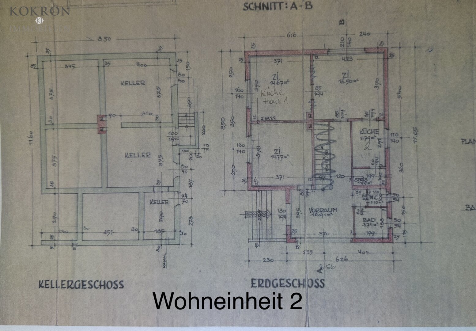 Es besteht aus zwei ebenerdigen Räumen, einer Küche, einem Bad mit Wanne und einem getrennten WC. Dieser Bereich wird aktuell nicht genutzt. Er könnte zukünftig Ihr Büro sein, Sie könnten dort Ihre Gäste unterbringen, oder erwachsene Kinder bekommen ihr eigenes Reich. Ebenfalls am "alten" Haus gibt es eine knapp 15m² große Garage mit 2,14m Höhe. Die Genehmigung und die Leerverrohrungen für die Errichtung von 2 Stellplätzen unter einem Carport liegen bereits vor.