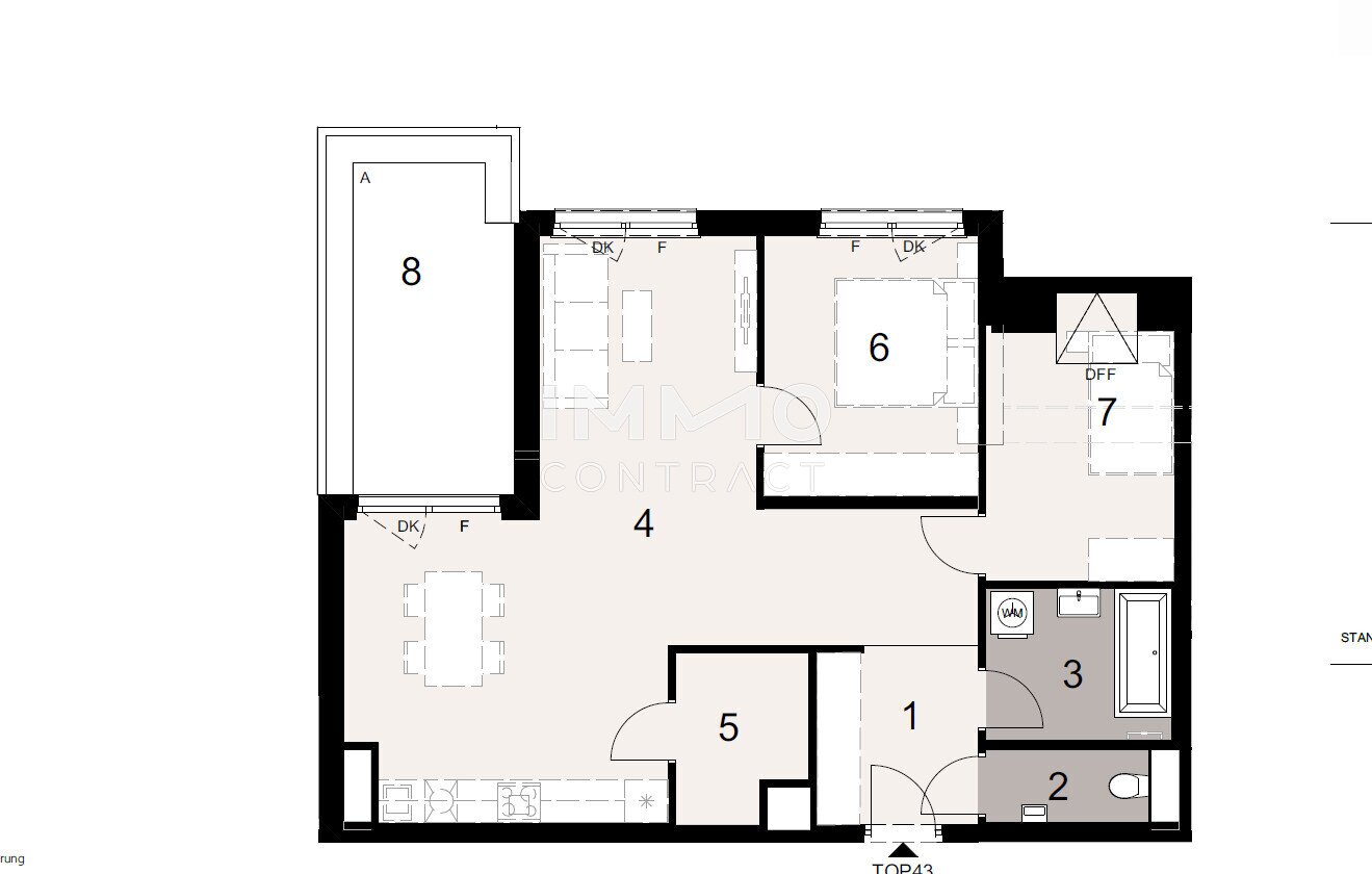 Diese großzügige 3-Zimmer-Wohnung im letzten Liftstock erfüllt höchste Ansprüche an modernes Wohnen. Der offene Wohn- und Essbereich mit integrierter Küche schafft Raum für gemeinsames Kochen, Lachen und Leben – hier werden aus Alltagen Lieblingsmomente. Von dort gelangen Sie direkt auf die westseitige Terrasse, wo Sie die Sonne bis in den Abend genießen können.