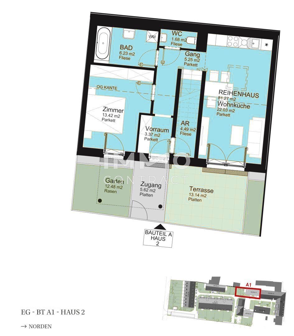 * Reihenhäuser: ca. 81 m² – 122 m²