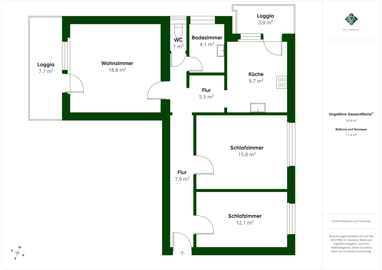 Ein besonderes Highlight sind die zwei Loggias, die zusätzlichen Freiraum bieten – ideal, um den Tag entspannt ausklingen zu lassen oder die frische Luft in ruhiger Umgebung zu genießen.