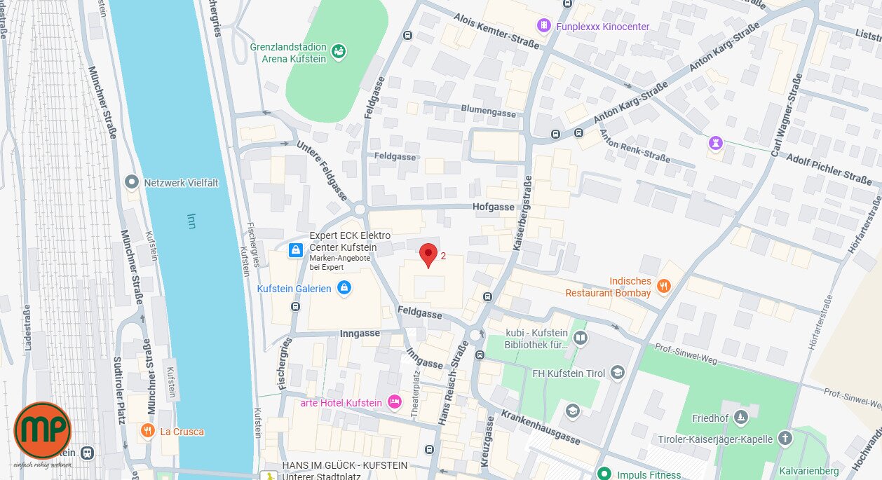In unmittelbarer Nähe befinden sich mehrere Bushaltestellen sowie der Bahnhof Kufstein mit regionalen und internationalen Zugverbindungen. Die Inntalautobahn ist ebenfalls schnell erreichbar und bietet eine gute Anbindung in Richtung Innsbruck, Salzburg und München. Dadurch ist sowohl der öffentliche Verkehr als auch die Anreise mit dem Auto optimal gewährleistet.