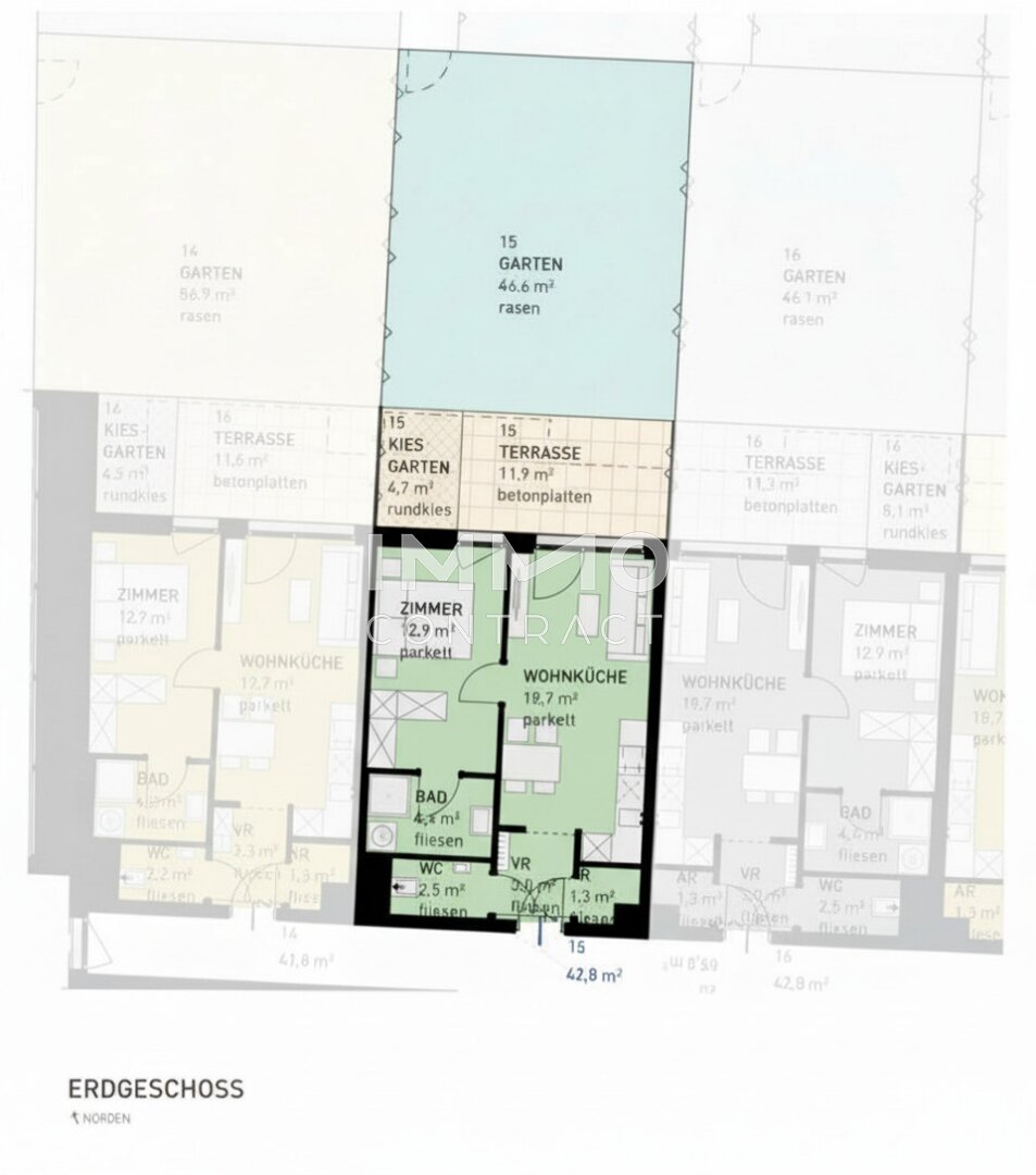 Bei Bedarf an mehr Wohnfläche berät das Vertriebsteam gern: Auf Wunsch lassen sich übereinanderliegende Einheiten zu einer Maisonette (4 Zimmer) verbinden oder nebeneinanderliegende Wohnungen zu größeren Einheiten zusammenlegen. Für Eigentümer besteht optional die Möglichkeit eines eigenen Gartenabteils; alle Gartenflächen werden mit Strom und Wasseranschluss versehen.