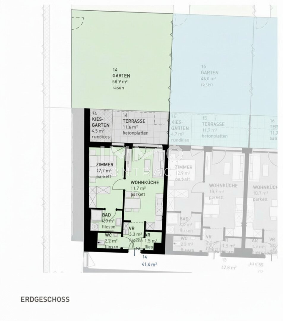 Bei Bedarf an mehr Wohnfläche berät das Vertriebsteam gern: Auf Wunsch lassen sich übereinanderliegende Einheiten zu einer Maisonette (4 Zimmer) verbinden oder nebeneinanderliegende Wohnungen zu größeren Einheiten zusammenlegen. Für Eigentümer besteht optional die Möglichkeit eines eigenen Gartenabteils; alle Gartenflächen werden mit Strom und Wasseranschluss versehen.