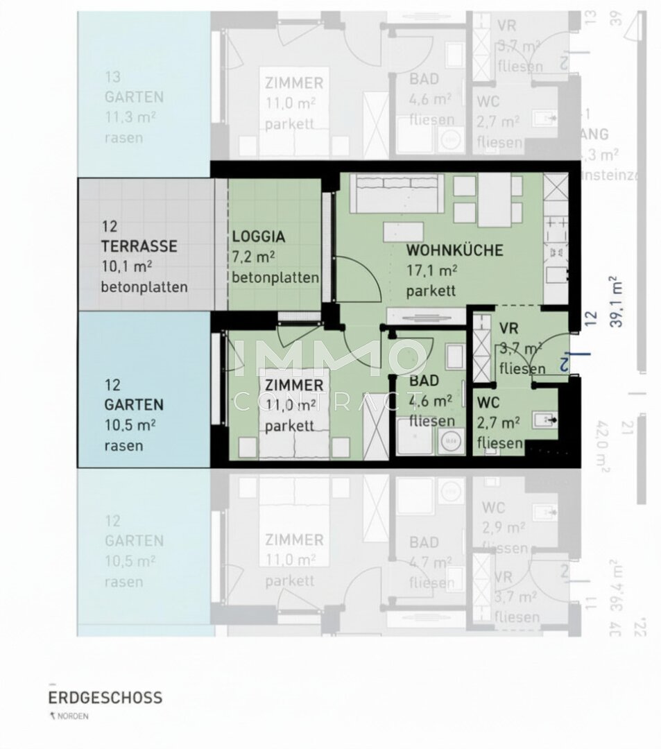 Provisionsfrei! 2-Zi Wohnung mit Garten, Terrasse & Loggia in 1220 Wien, U-Bahn nahe!
