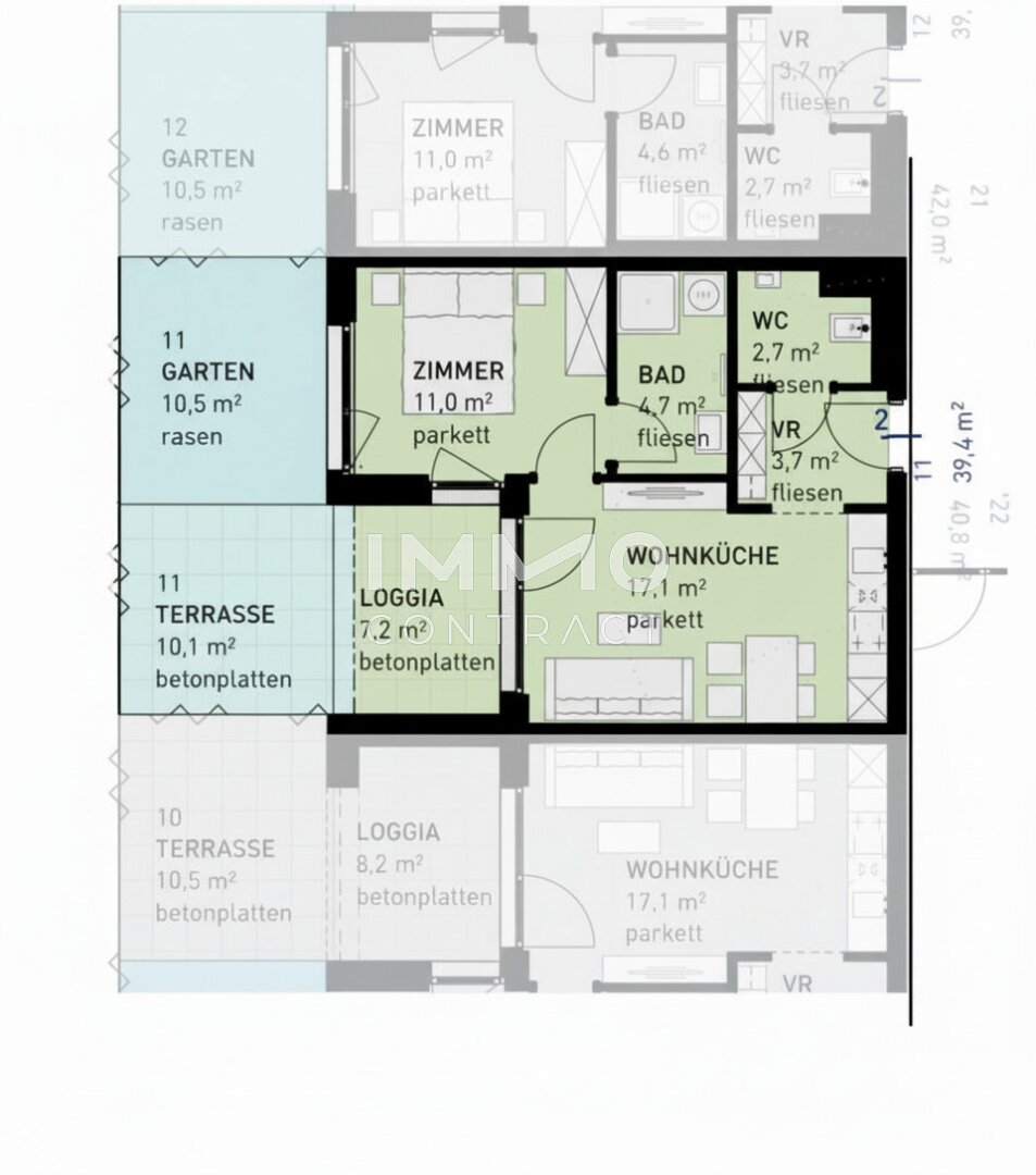 * Jede Wohnung mit privater Freifläche (Loggia, Balkon, Terrasse, Eigengarten)