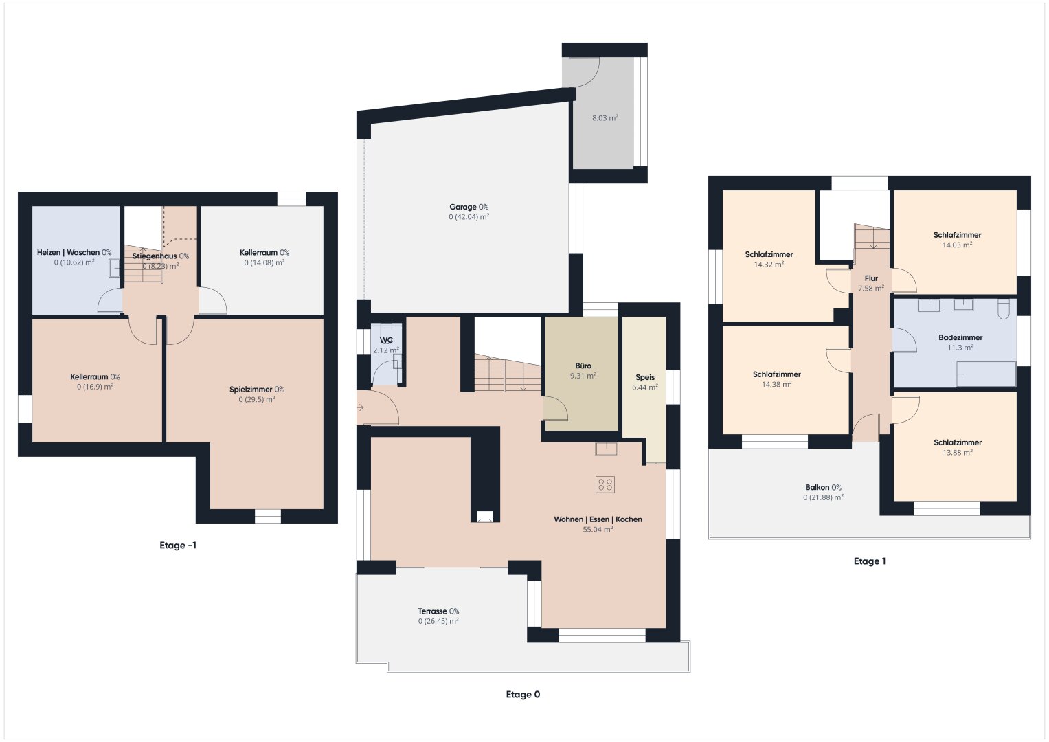 Das Untergeschoss umfasst mehrere Nutzräume, die sowohl funktional als auch wohnlich gestaltet sind.