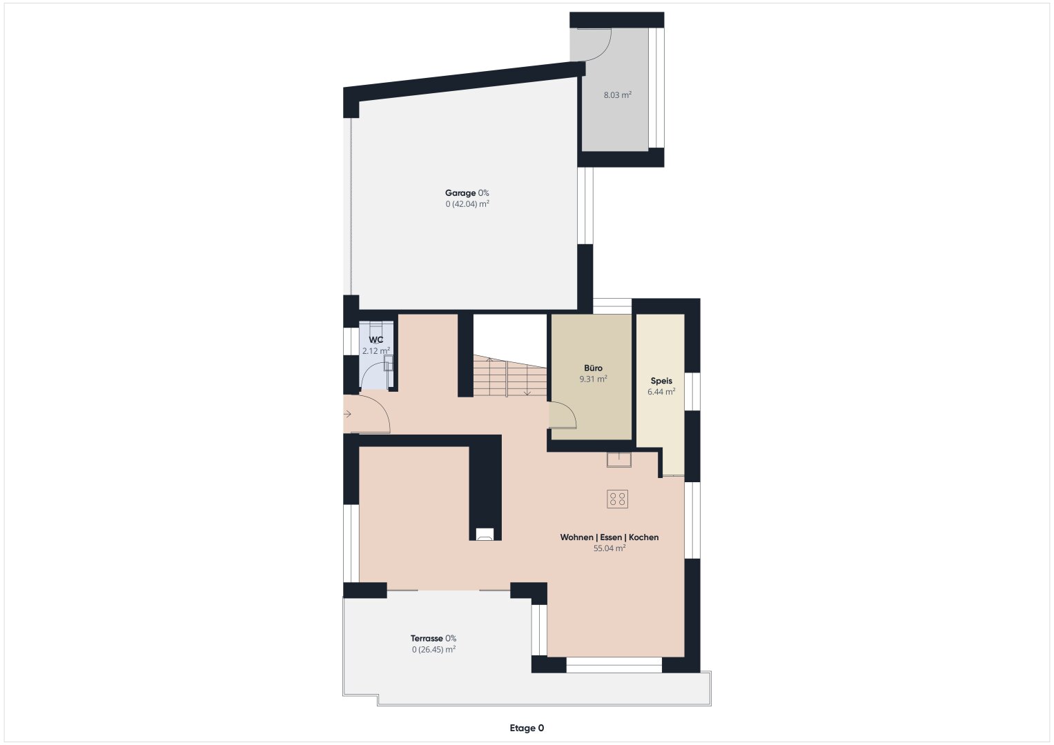Eine Vorratskammer direkt bei der Küche, ein Büro, sowie ein Gäste-WC ergänzen diese Ebene.