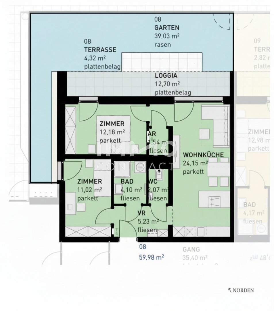* Jede Wohnung mit privater Freifläche (Loggia, Balkon, Terrasse, Eigengarten)