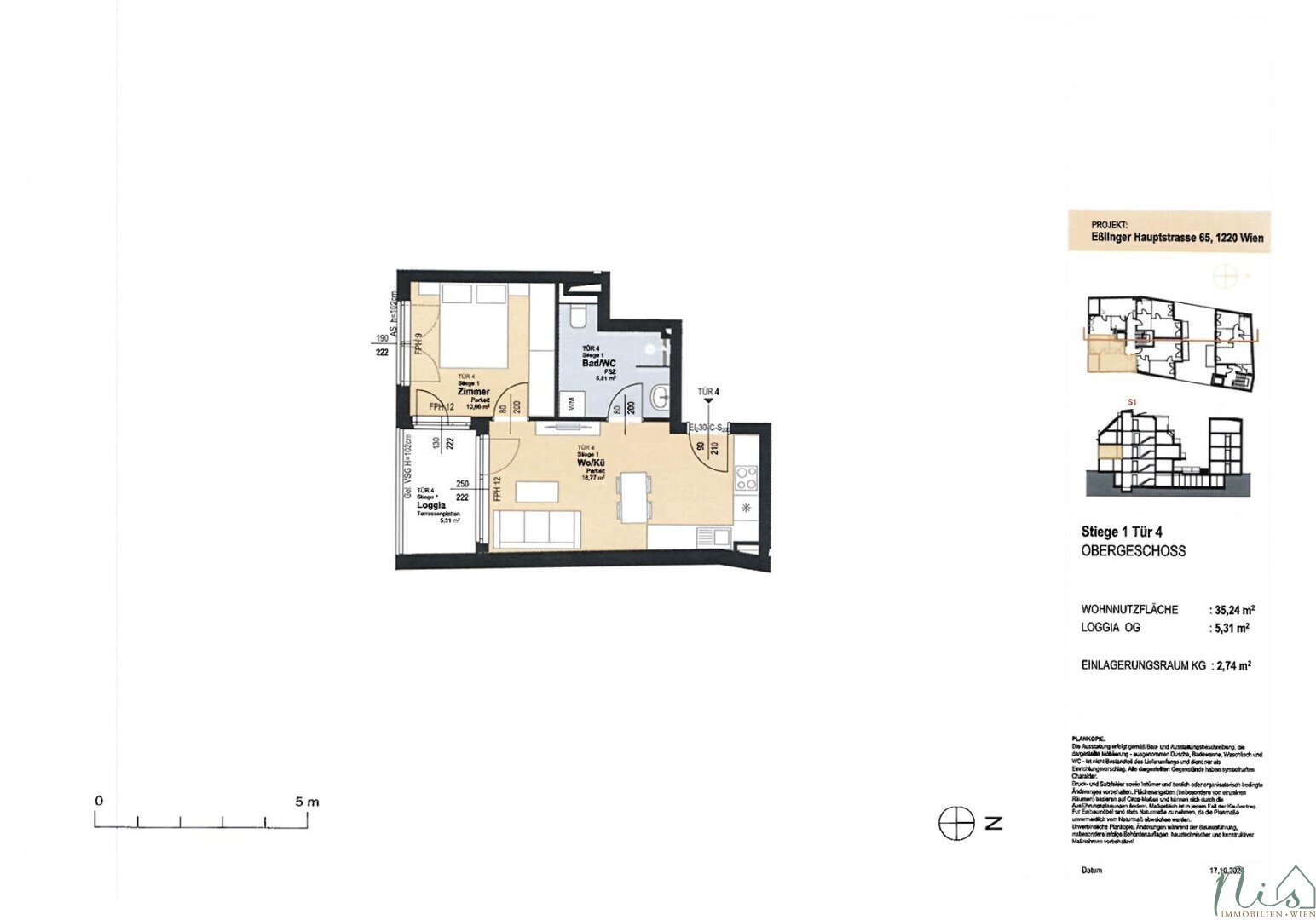 TOP 4 – 2 Zimmer -> Gesamtfläche ca. 40.55 m² - WNFL ca. 35.24 m² / Loggia ca. 5.31 m²,