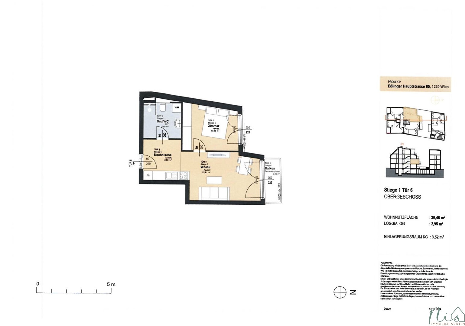 TOP 6 – 2 Zimmer -> Gesamtfläche ca. 42.41 m² - WNFL ca. 39.46 m² / Balkon ca. 2.95 m²,